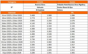 - 03 (três) noites de hospedagem em Buenos Aires em hotel de categoria escolhida;