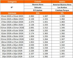 - 02 (duas) noites de hospedagem em El Calafate e em hotel de categoria escolhida;