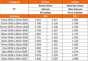 - 02 (duas) noites de hospedagem em Ushuaia e em hotel de categoria escolhida;
