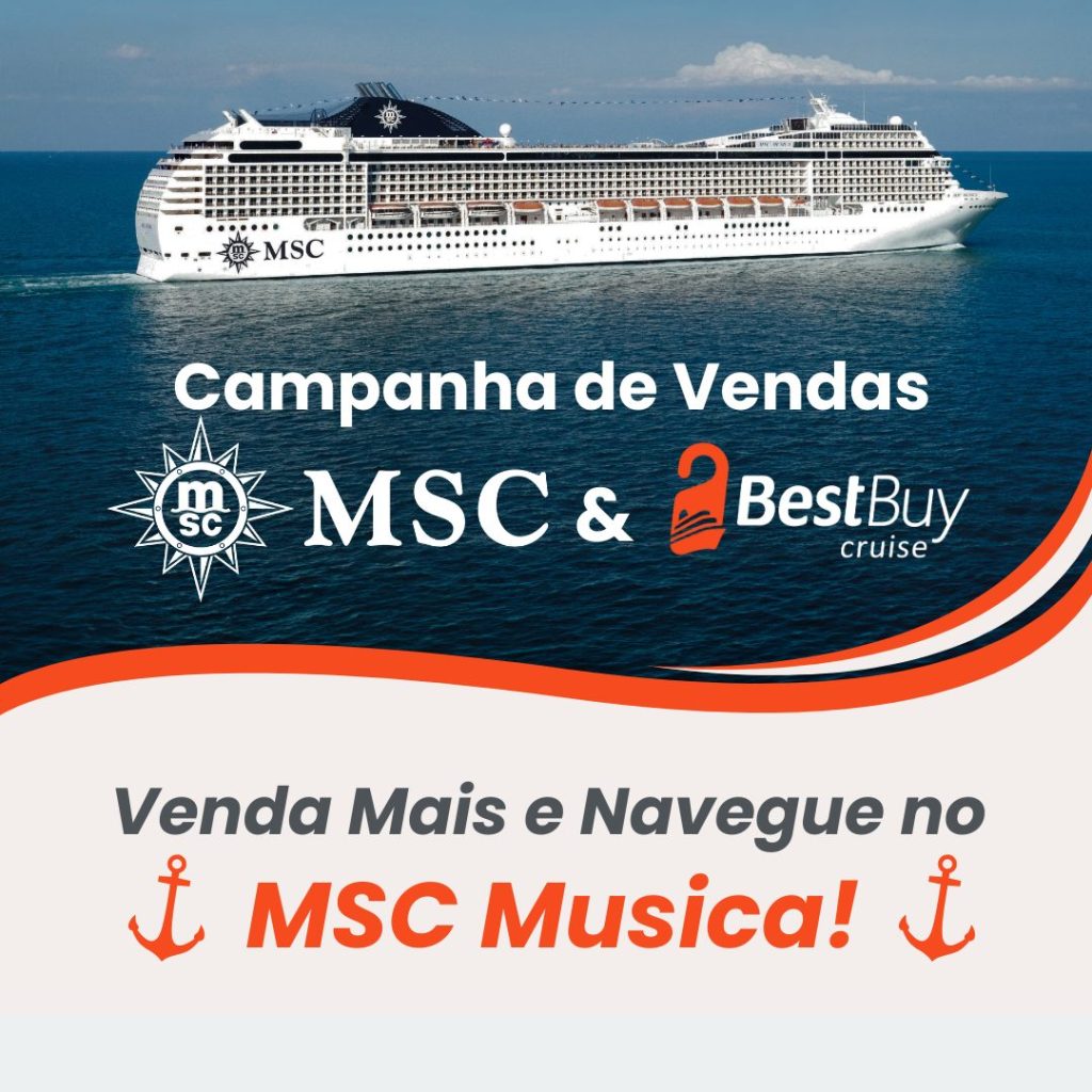 Participe da campanha de vendas da BestBuy Cruise, em parceria com a MSC, para agências selecionadas por região, valendo uma viagem a bordo do MSC Musica!